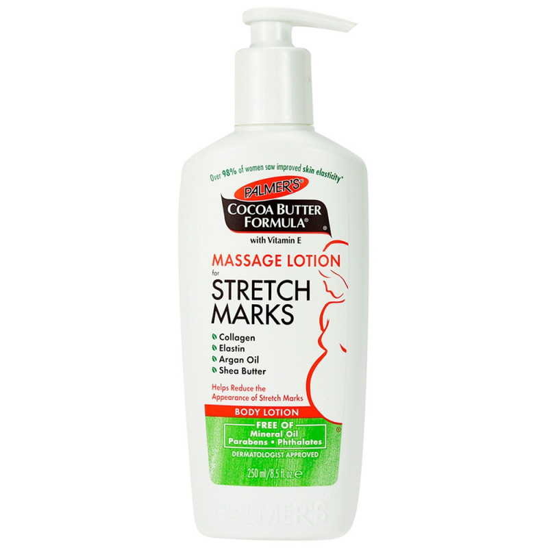 A loção de massagem com fórmula de manteiga de cacau ajuda a melhorar a pele e reduzir a aparência de estrias